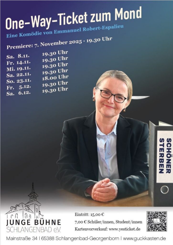 Leider kann die Vorstellung One-Way-Ticket zum Mond am 19.11.2025 aufgrund eines Krankheitsfalls nicht stattfinden.